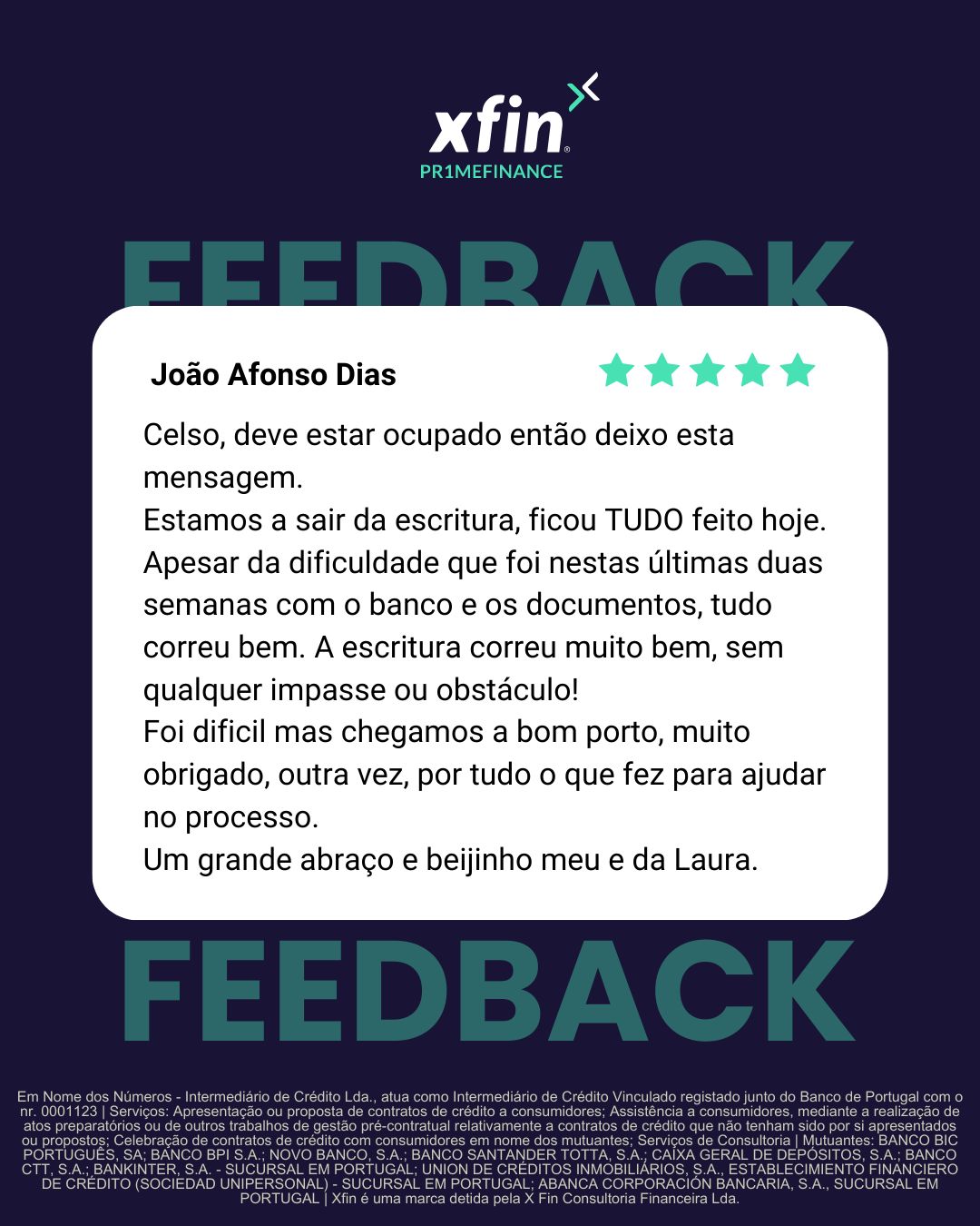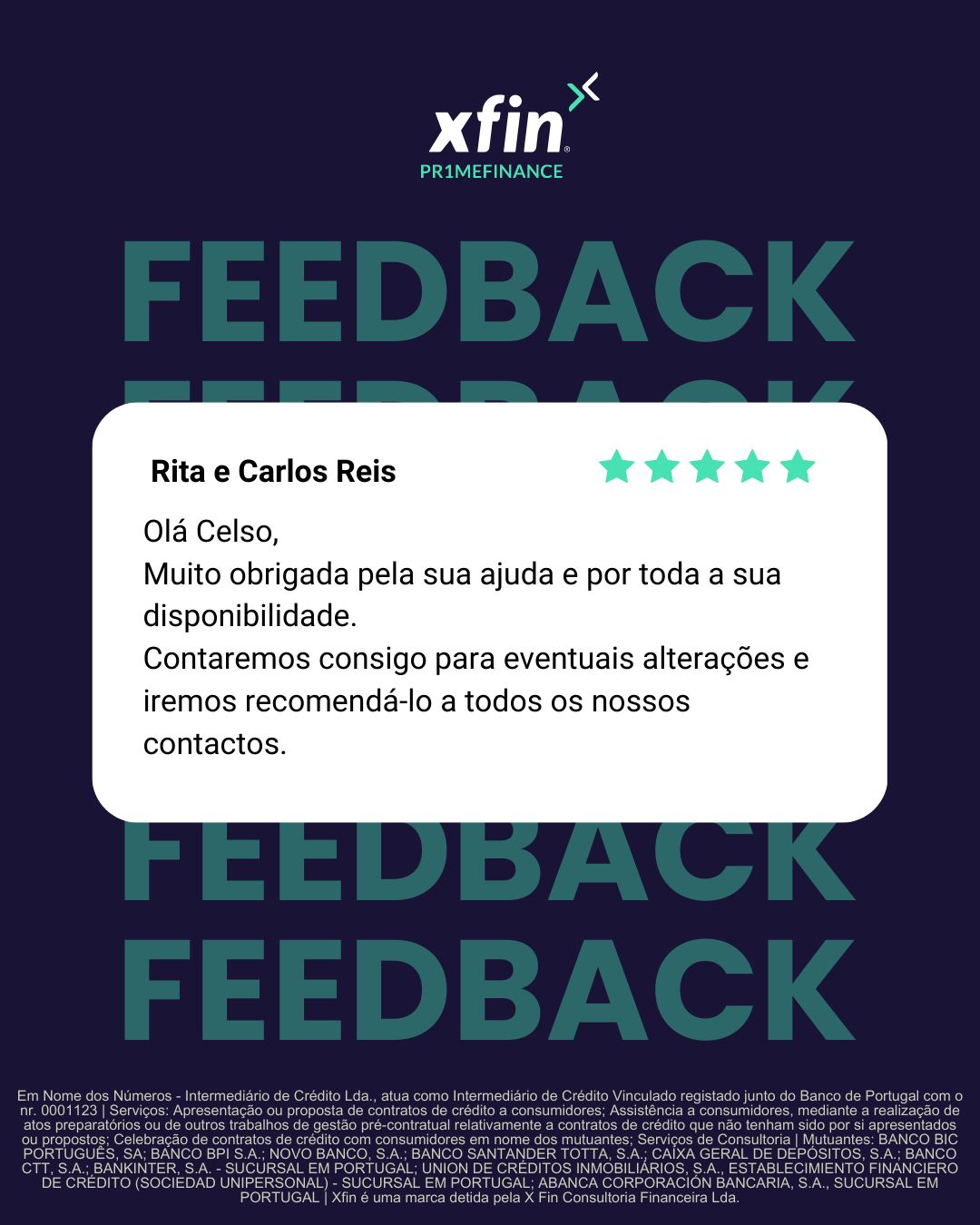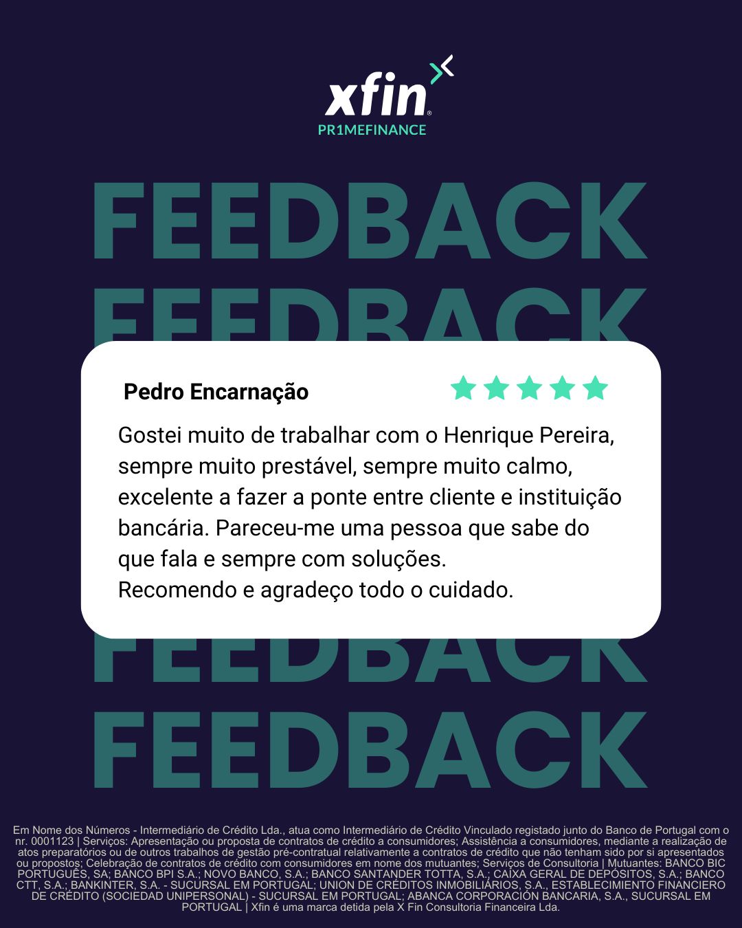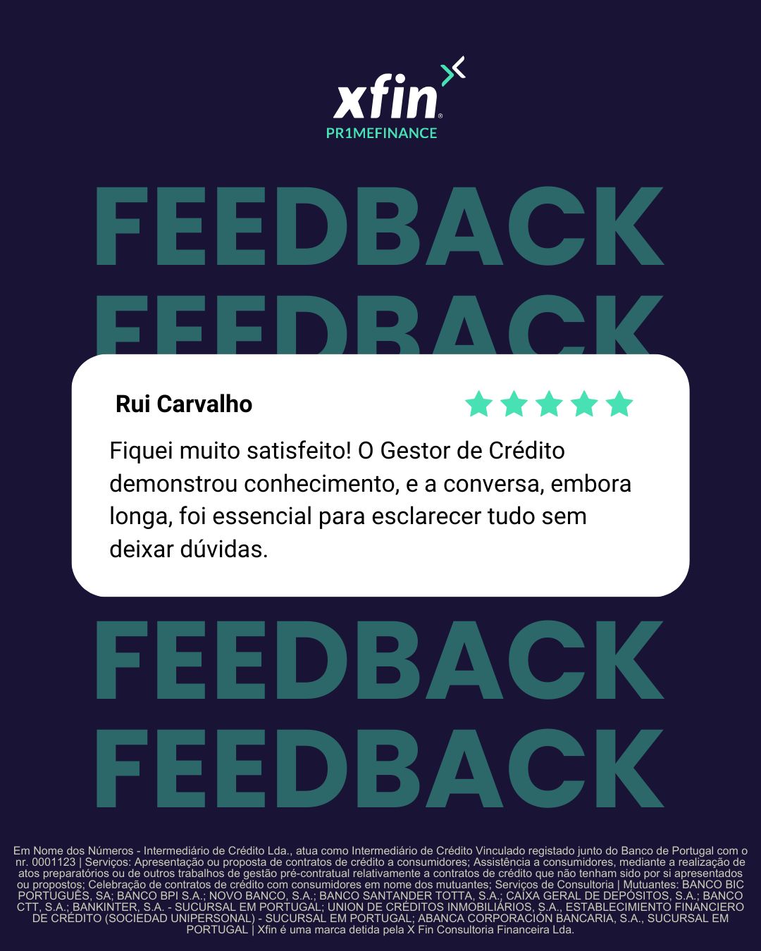 Nº de Registo como Intermediário de Crédito junto do Banco de Portugal 0001123